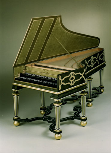 羽管键琴,拨奏弦鸣乐器。音译为哈普西科德,16世纪至18世纪盛行于欧洲的键盘乐器。在形制上与现代的三角钢琴相似,但琴弦是用羽管拨奏而不是用琴槌敲击。每根弦是由固定在每个琴键末端木制支柱上的1个羽毛管或硬皮拨子来拨奏的。在支柱另一面的顶端是一小块起制音器作用的毡子。当琴键按下时,支柱抬起,拨子拨动琴弦。琴键放开时,支柱落回,但特制的、可转动的拨子经过琴弦时不再拨动。琴键静止时,制音器接触琴弦,阻止其发出声响。因此,羽管键琴只是在琴键实际按下时才能够发音,在琴键放开后它不会继续鸣响。而且演奏者不能像钢琴那样通过改变手指的压力来变化力度(强,弱)。18世纪中叶比较典型的羽管键琴有两个键盘,每个键盘各有5个八度的音域,从C下面的F1到高音C上面的f2。这类羽管键琴一般有几个音栓,演奏者可以通过对音栓的控制来获得不同的音高和音色。这时的羽管键琴与早期的不同,它有两个踏板,一个是合成踏板,用于改变音栓(以使演奏者的手不用离开琴键去推拉音纽)。另一个用来控制可改变声音音量(强)的威尼斯增减音器装置,很像管风琴中使用的增减音器踏板。现代制造的羽管键琴几乎都用踏板来替代手动操作的音栓。羽管键琴的历史可追溯到14世纪英、法和西班牙的一种拨弦键琴棋盘琴。羽管键琴的声音明亮、清澈,具有金属的光泽。但羽管键琴音量单薄,对指触的力度变化反应甚微,音响的强弱对比较差,19世纪初,逐渐被钢琴所替代。