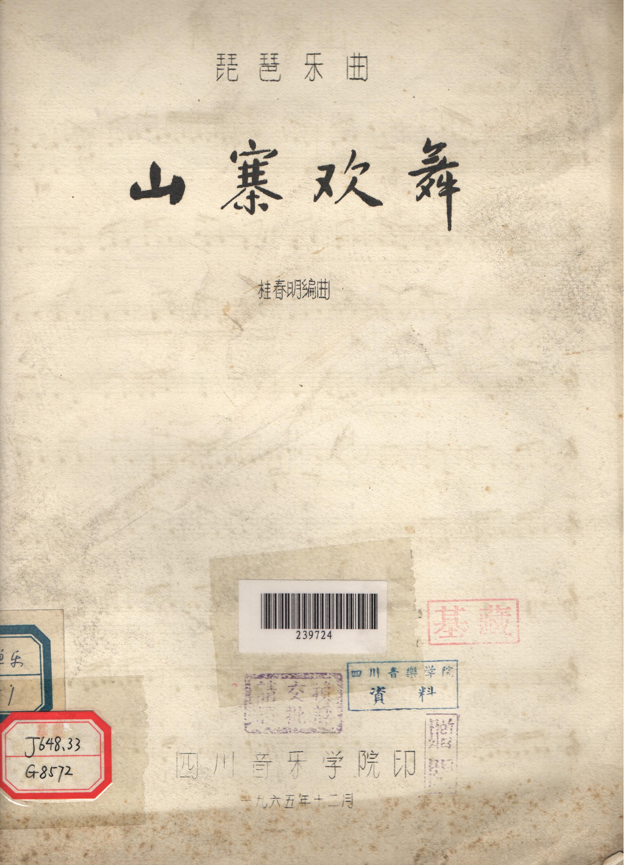 桂春明1965年编曲的琵琶乐曲《山寨欢舞》。
