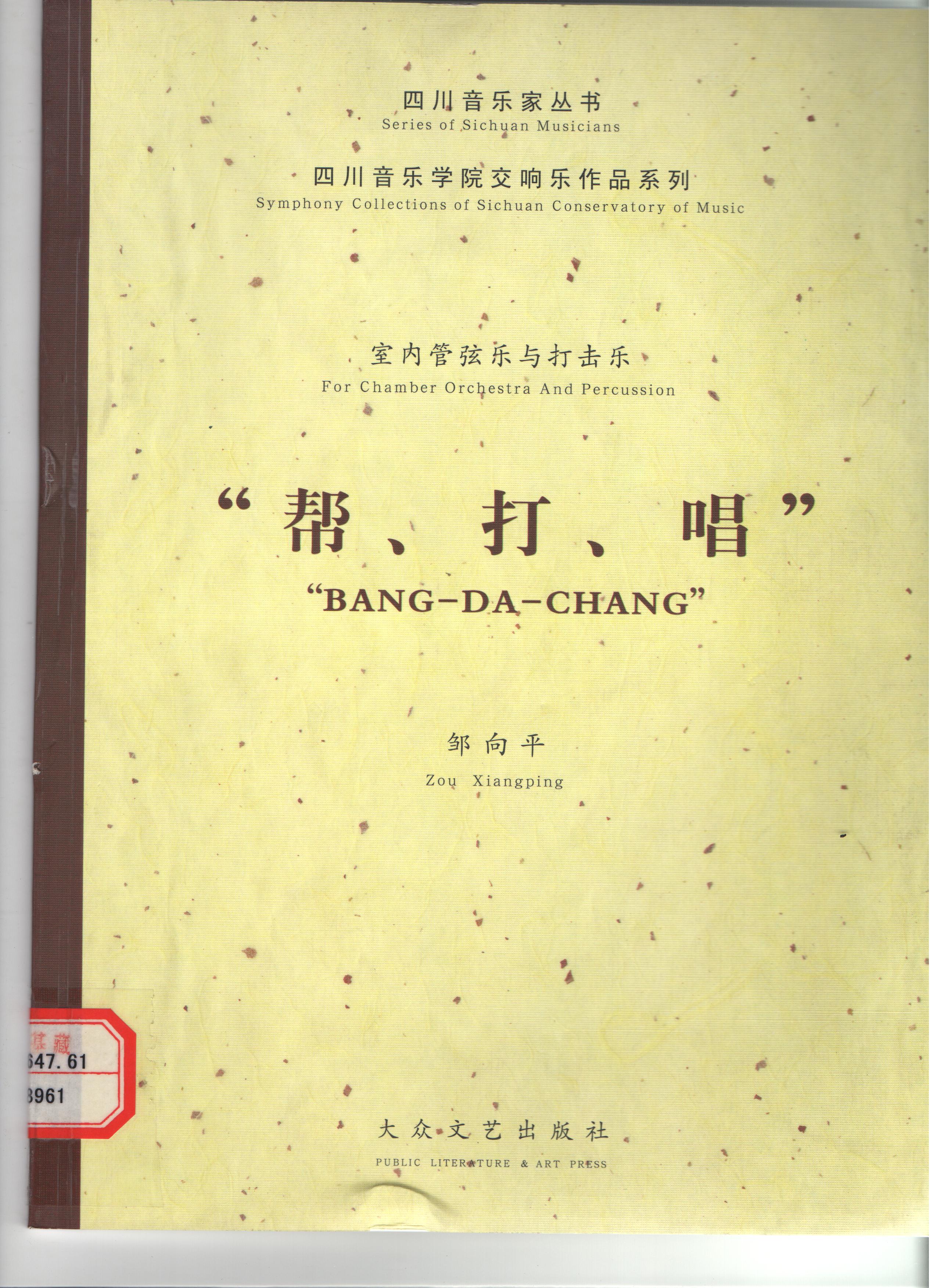 邹向平编著的室内管弦乐与打击乐作品《帮.打.唱》。