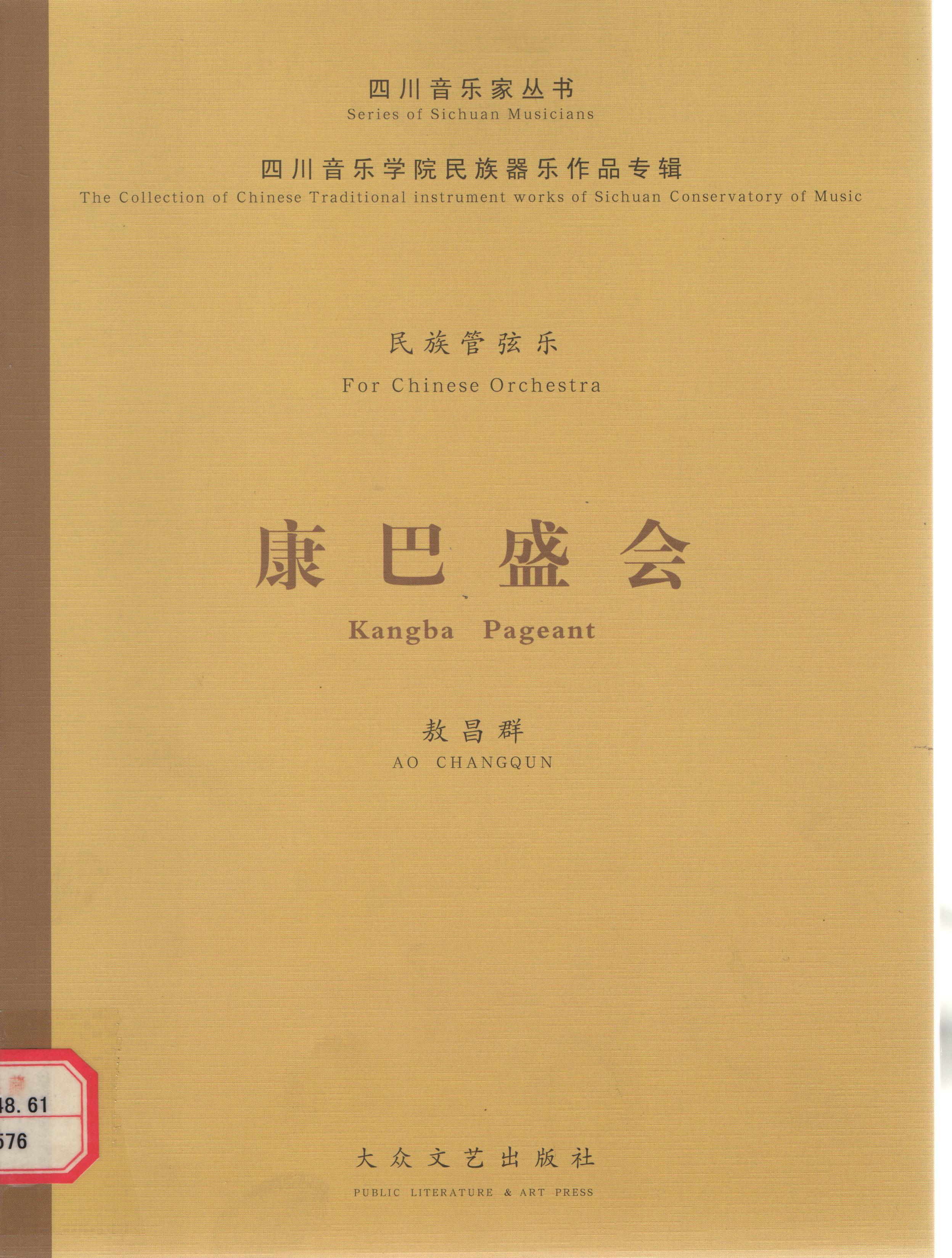 民族管弦乐《康巴盛会》。此曲运用藏族民间音乐《踢踏》、《旋子》的基本动机创作、发展而成。乐曲以康巴草原盛大节日里激烈、紧张刺激的赛马场作为背景,表现了藏族青年骠悍、勇敢,意气风发的精神面貌。