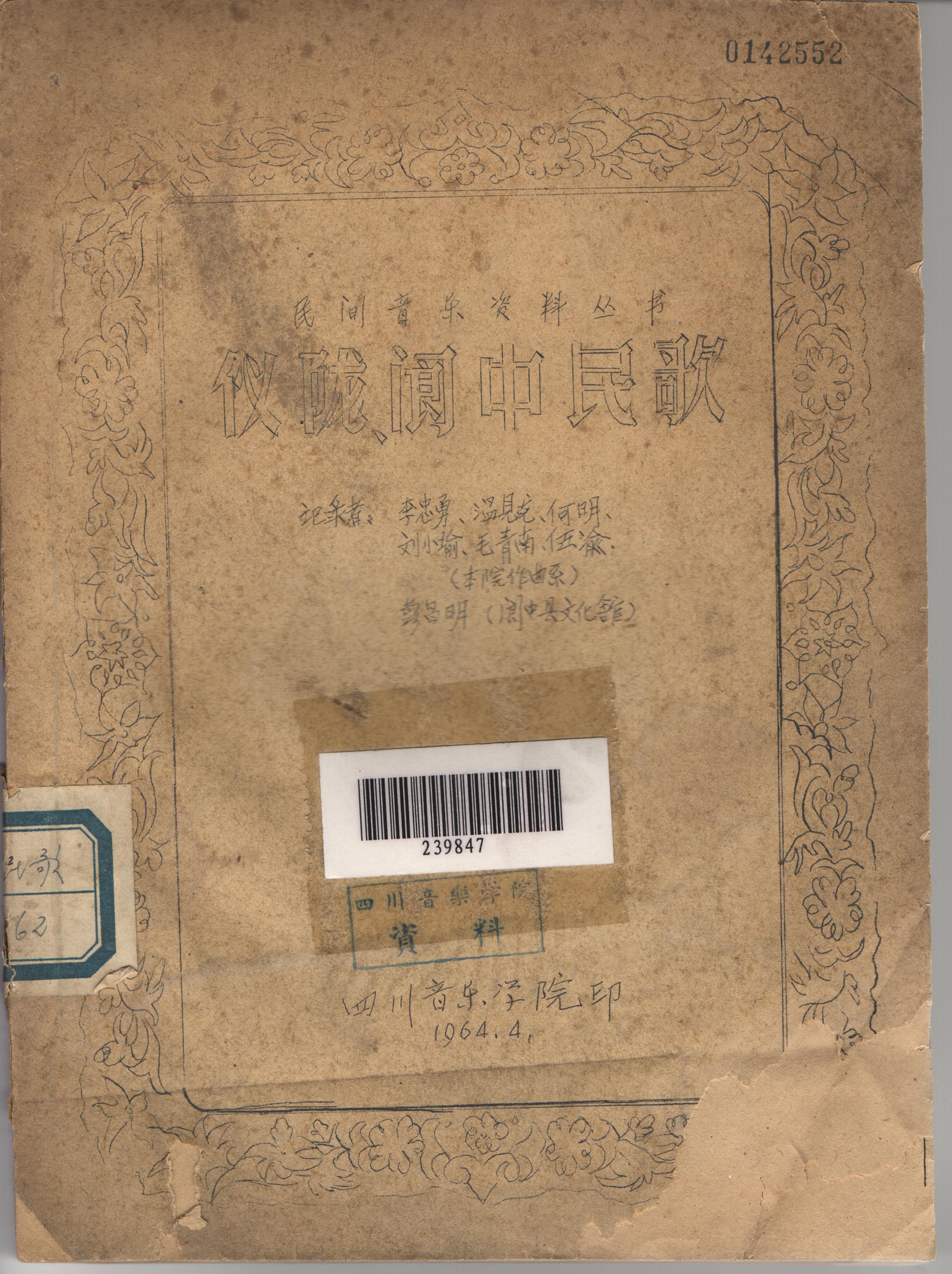 民间音乐资料丛书《仪陇、阆中民歌》。本书收集了仪陇县立山区、中坝区及阆中县老鹤区等地的部分民歌和唢呐曲牌,择选后共计60首。