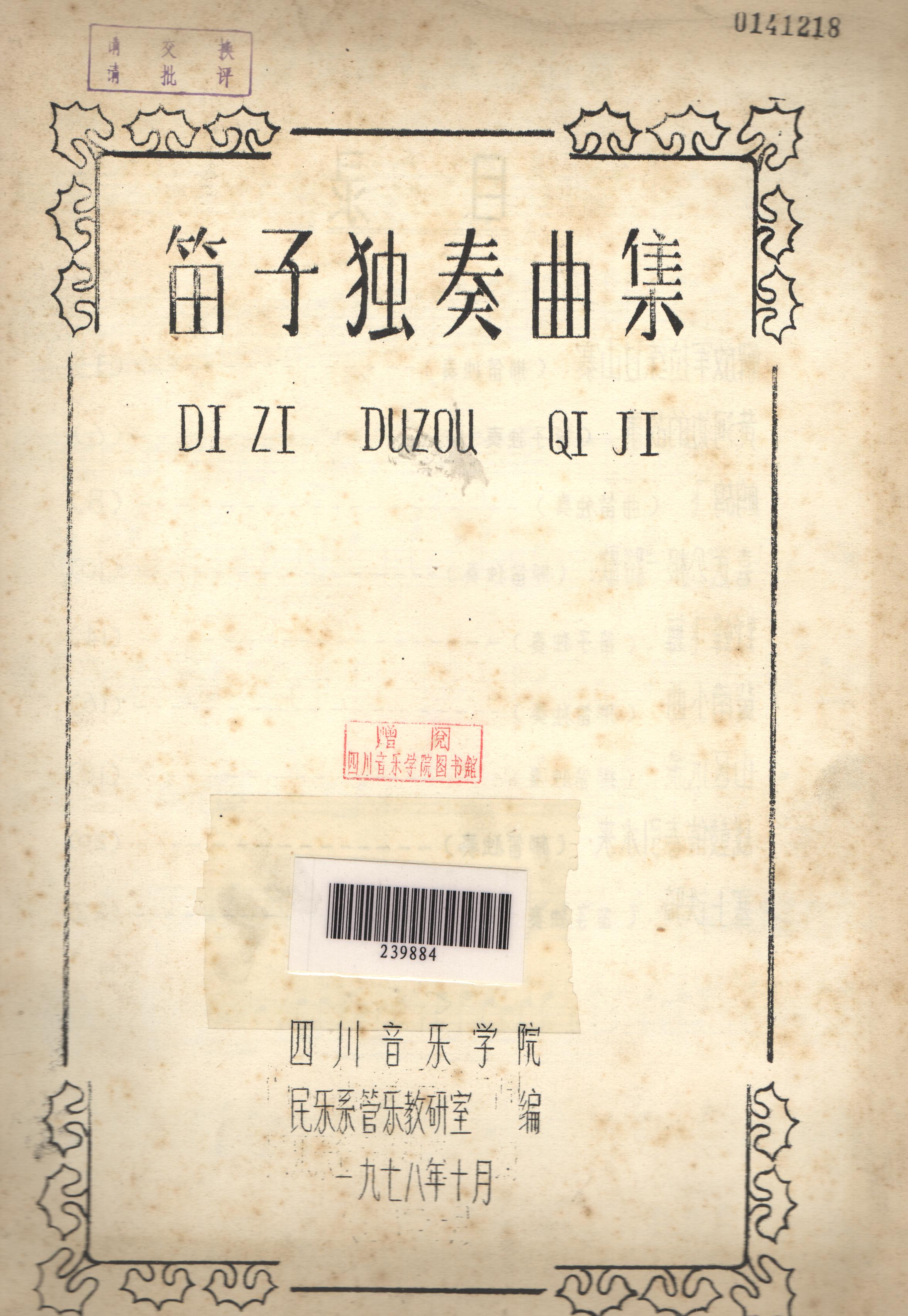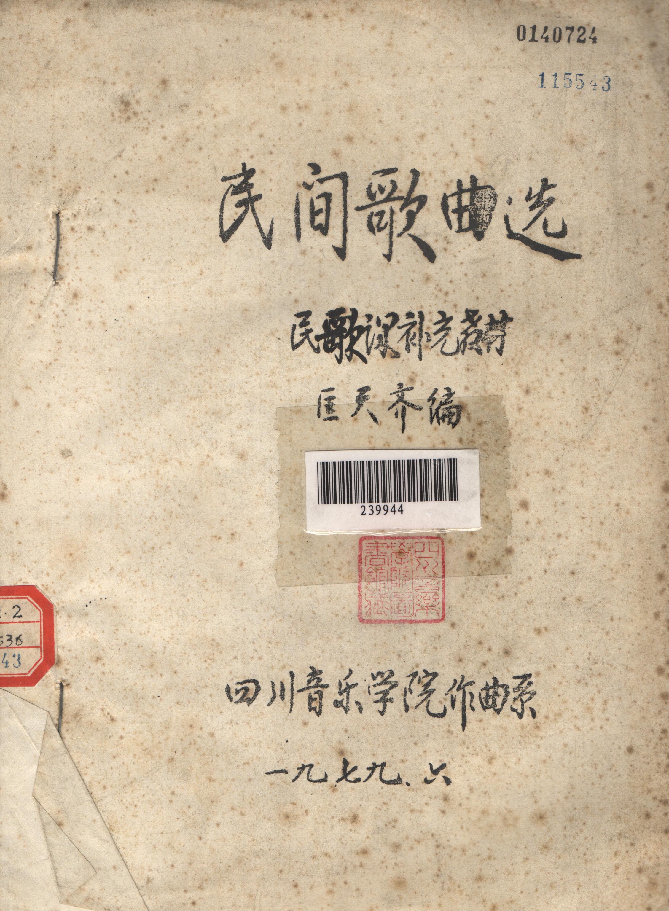 本书是我院作曲系在1979年编印的,本书收录了众多各个地区各个民族的民间音乐。
