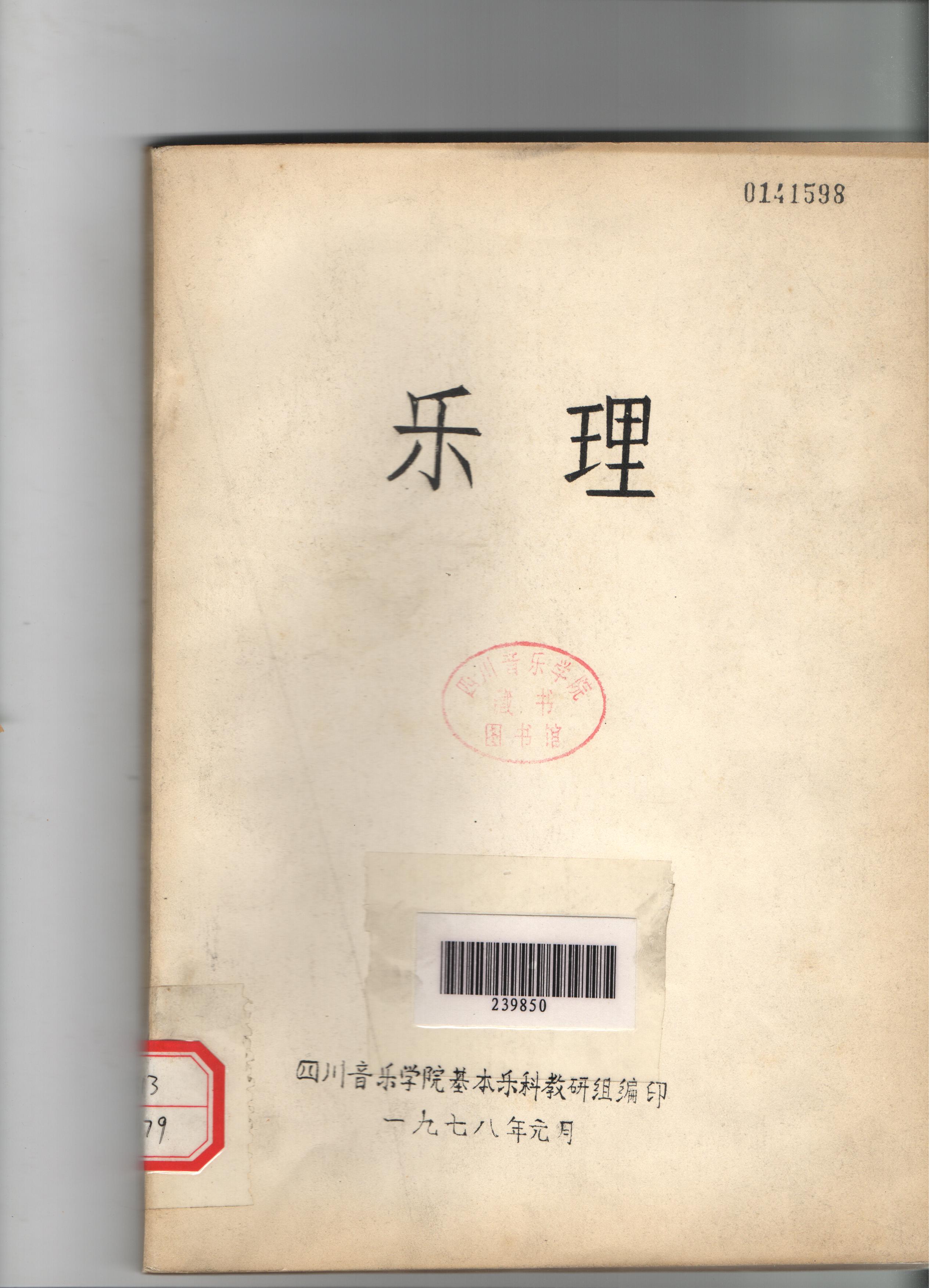 四川音乐学院基本乐科教研组1978年编著的《乐理教材》其中对音的高低,音的长短 节奏与节拍 速度、强弱记号 各种略写记号及其他记号 装饰音、印成、和弦、调式概论、传统民族调式 五声调式、七声调式、大调、小调、调性变换、半音阶、移调进行了详细的讲解。还附录来一些音乐专业术语。