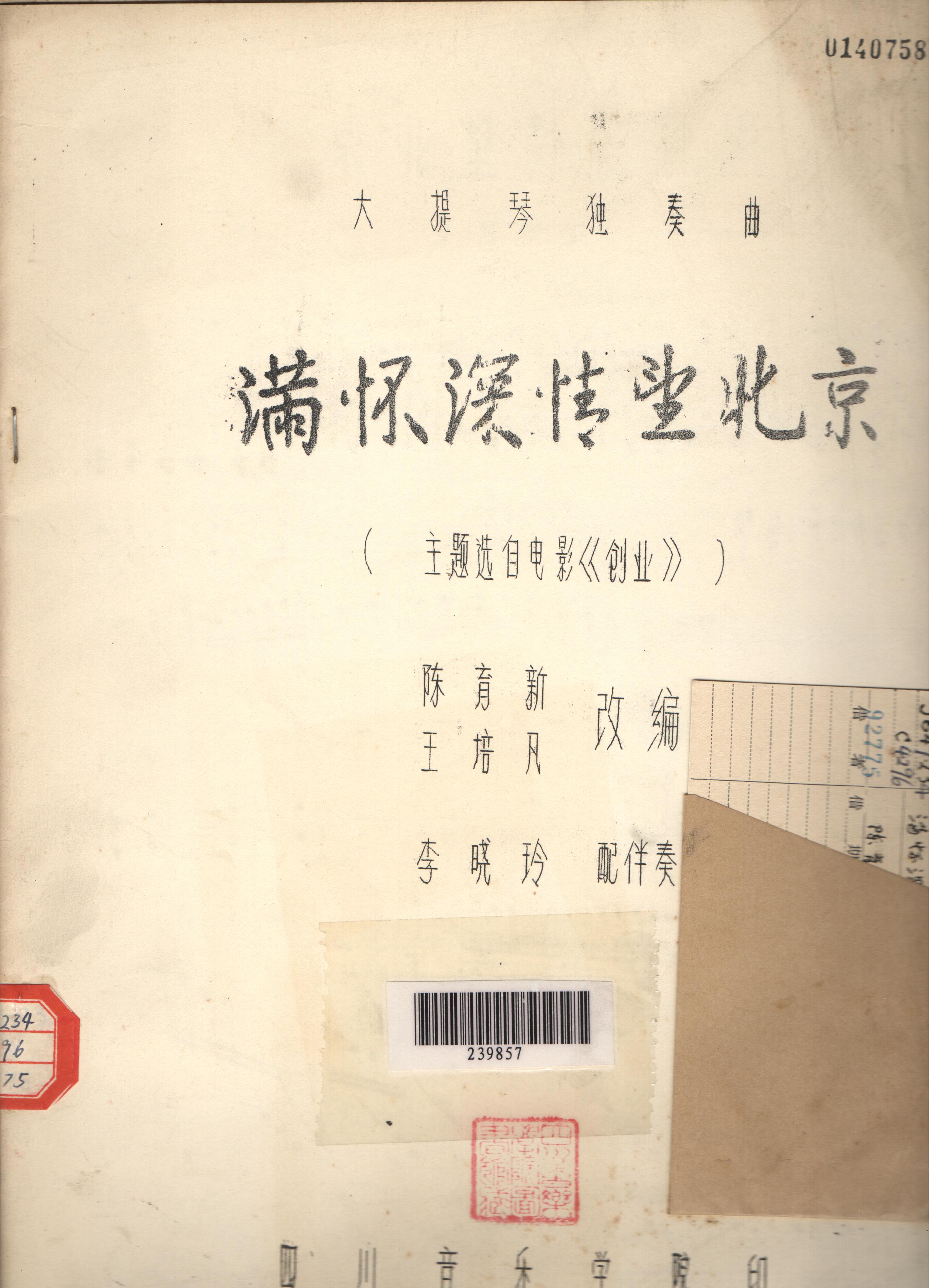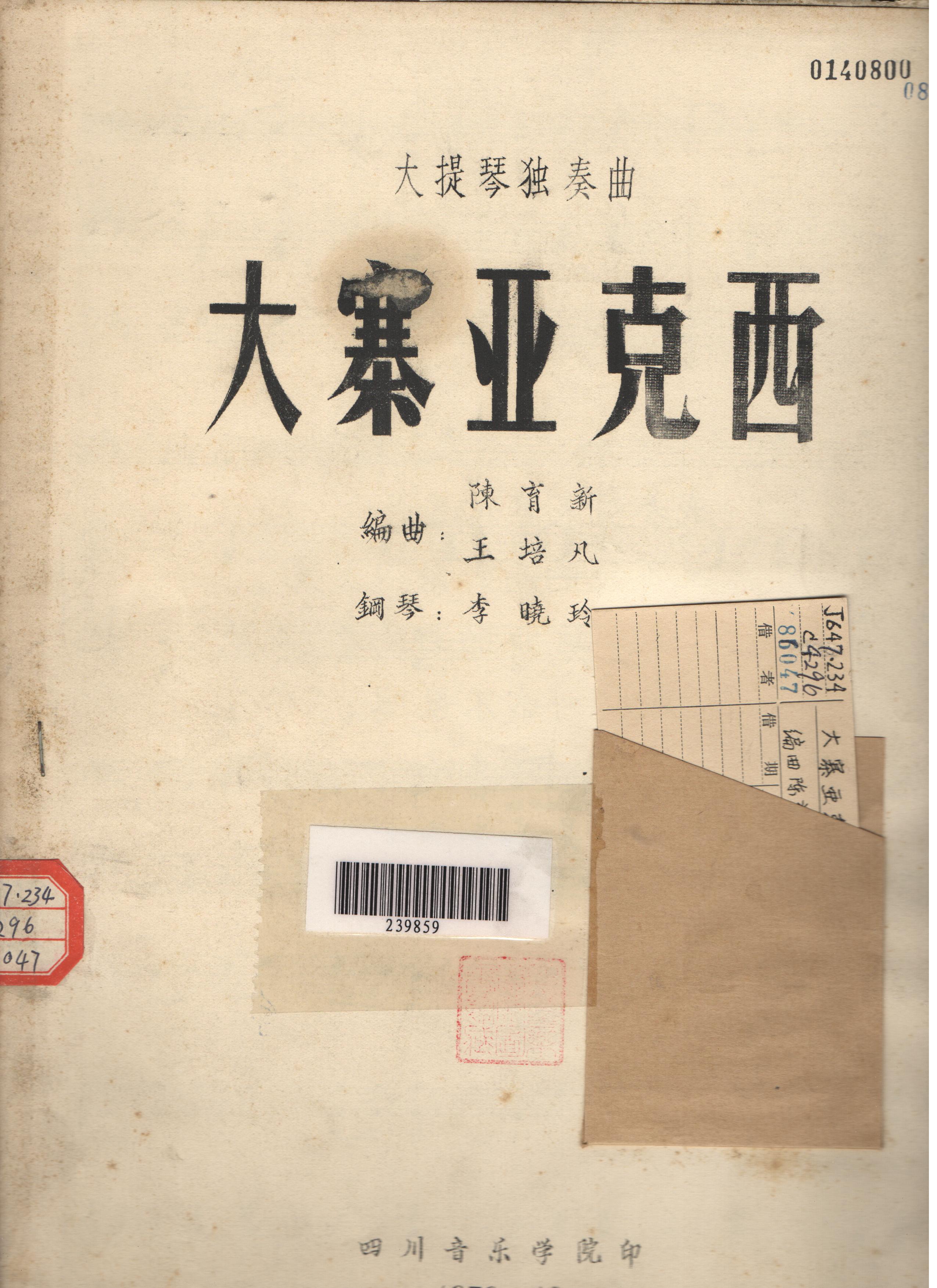 陈育新 王培凡 李晓玲创作的大提琴独奏曲。