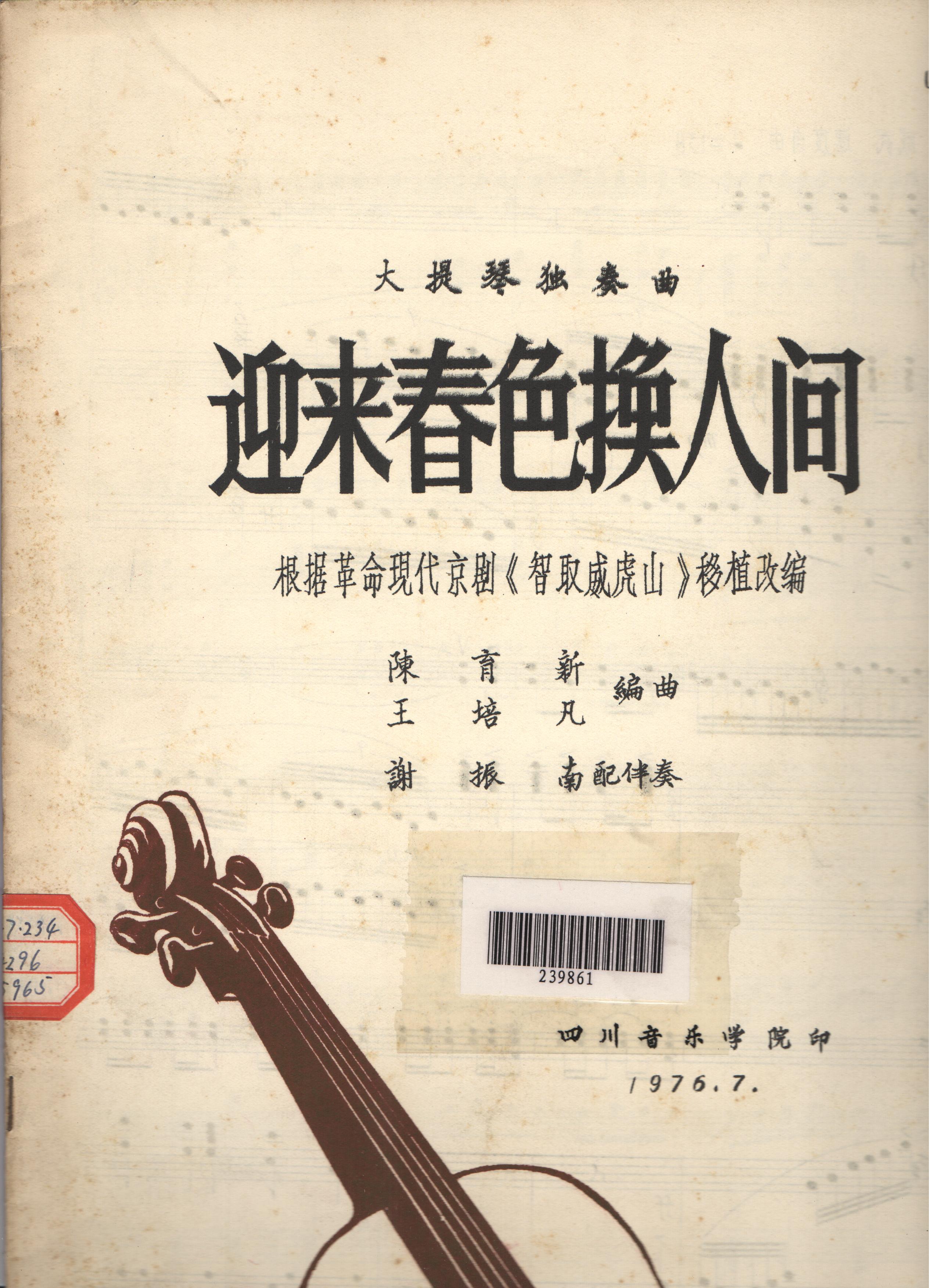 陈育新 王培凡 根据革命现代京剧《智取威虎山》移植改编而来的大提琴独奏曲,然后由谢振南培的伴奏。