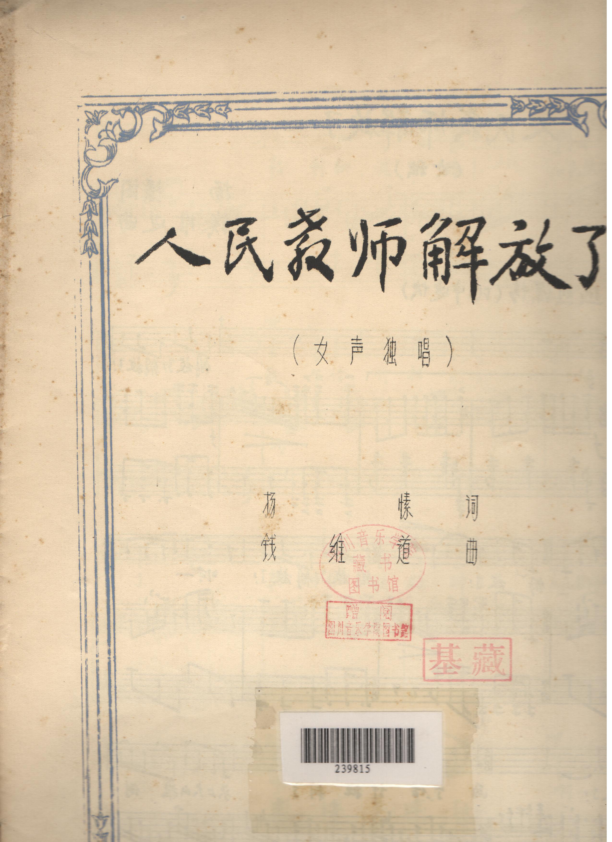 扬愫写词 钱维道谱曲的一首女生独唱曲目。