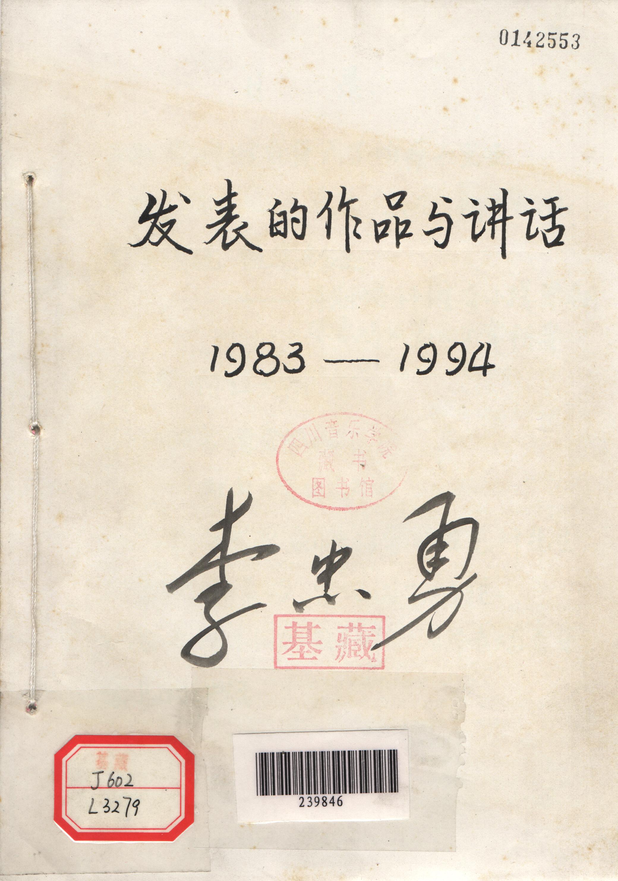 此书内容为四川音乐学院院长李忠勇1983-1994年发表的作品与讲话,为内部编印。