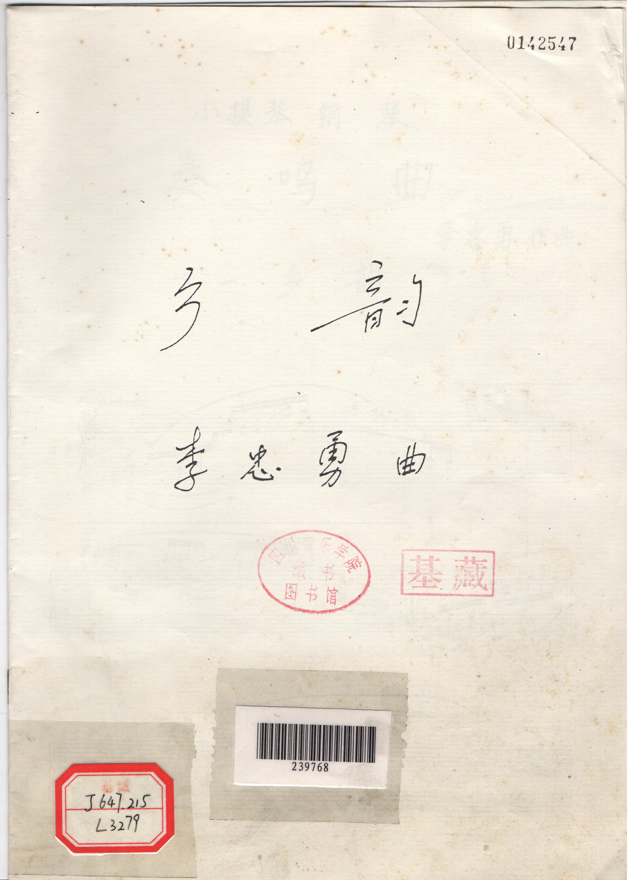 此乐曲是由四川音乐学院院长李忠勇编曲的小提琴、钢琴协奏曲《乡韵》,为本院内部编印。